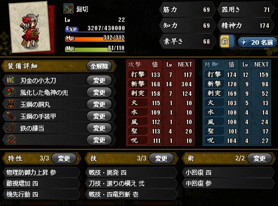 [かくりよの門]鵺の湖畔-深部がしんどい! 伊豆網代漁村が初見でクリアできたもんで図に乗ってました_(:3」∠)_ 鵺の湖畔-深部がしんどーーーーーーーい! 取りあえず転送の陰陽玉まで進めればいいかなー…なんて軽い気持ちで数回挑んでいるのですが、これはもう探索以前の問題。 武士が育っていないせいか、大体2マップ目で撤退の憂き目に合う事が多いです(涙 や・・・ 武士もそうですが火力も育ってないので全体的な底上げの必要性を感じています。 キャラ自体がどうこうと言うより装備が貧弱すぎる気がする。 優先順位としてはやはり武士かなぁ。 武士の防具は玉鋼シリーズなのですが、雑魚が3体出てくると1ターンで瀕死状態。 スタン食らったりして回復が間に合わなかったらそのまま死亡です(´・ω・`) でPT崩壊と… んー。 しばらくは餌を育成しようかな。 ボスの鵺も強いとのことですが、雑魚にここまで苦戦してたら絶対に勝てないと思うんだ。 物理防御力上昇と護りの構えをもう少し上げたいなぁ。 関連する日記 PR